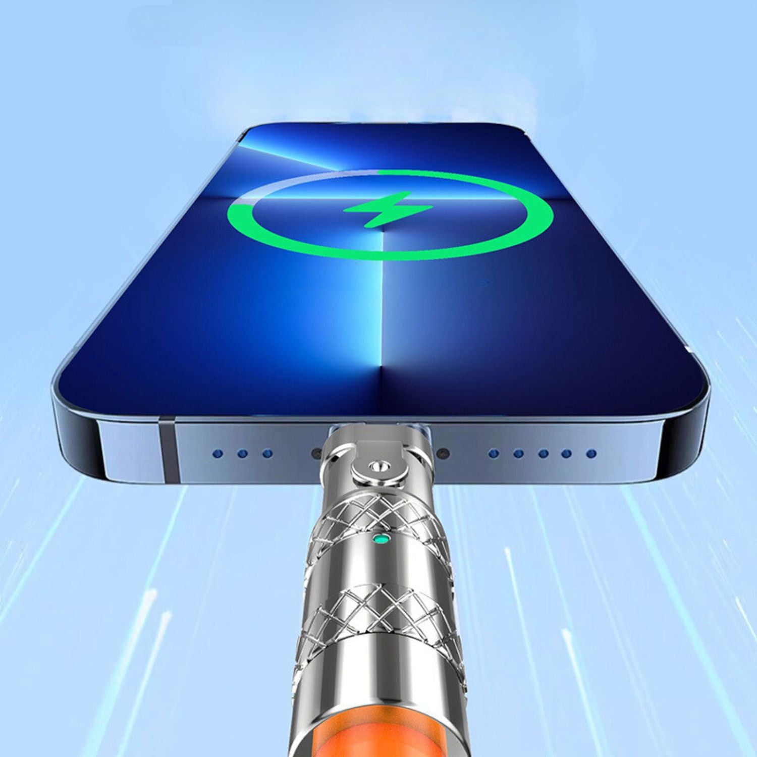 Redefine the way you fuel your devices with our 120W Turbo Charge capability. Designed for those who can't afford to wait, this cable ensures your devices get the power boost they need in record time. No more prolonged waiting by the outlet; our cable efficiently transfers energy, ensuring your devices are ready to go when you are. Whether you're prepping for a meeting, gearing up for a gaming marathon, or just on the go, trust in the rapid charging prowess of our 120W solution. Experience the future of charging, today.