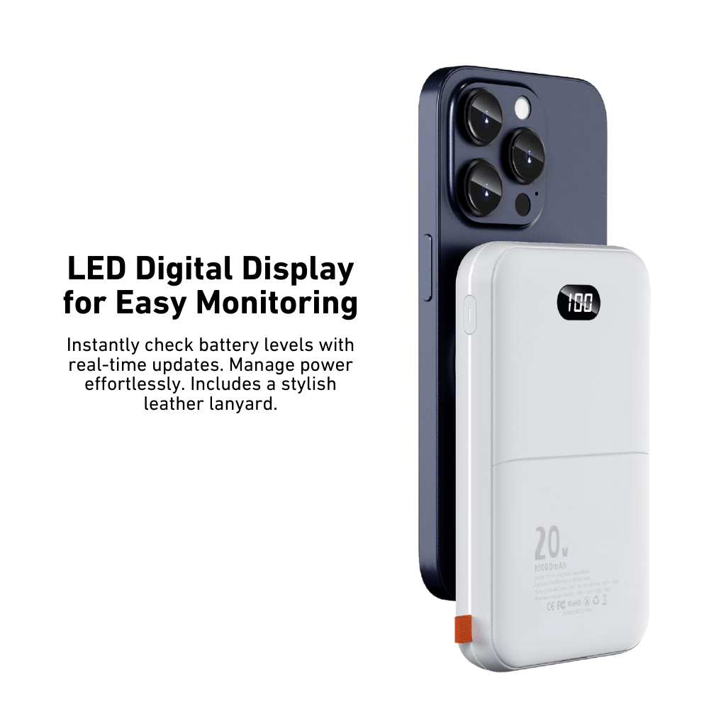 Enjoy flexible charging with PD20W Type-C fast charging and up to 15W wireless charging, perfect for various devices and quick power-ups.