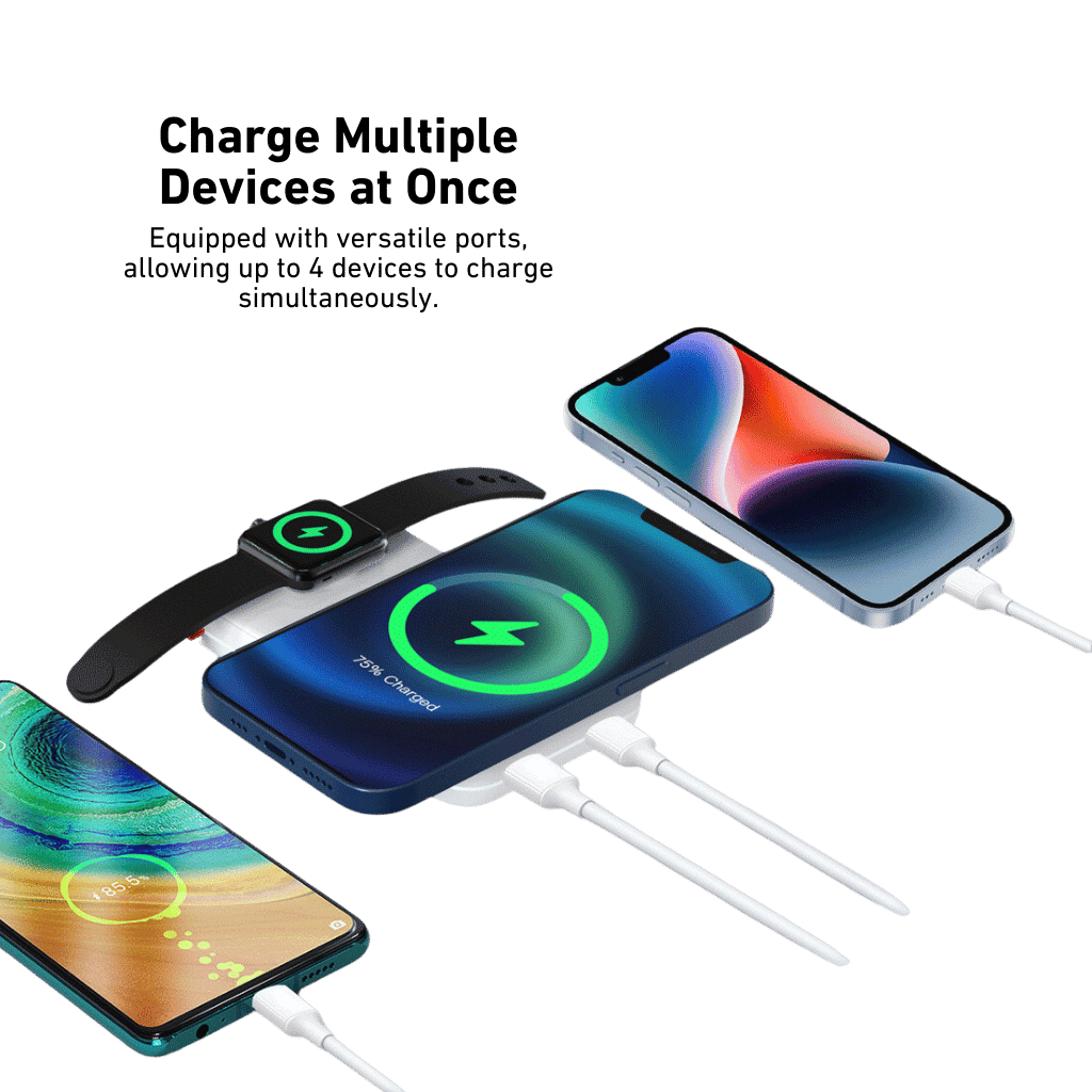 Simultaneously charge up to four devices with versatile interfaces and high power output, ideal for keeping multiple gadgets powered.