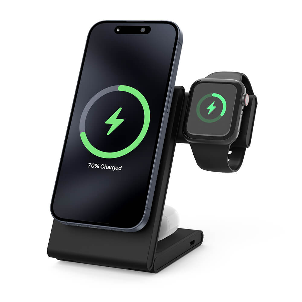 Stop juggling multiple chargers — keep all your Apple essentials powered at once with one compact 3-in-1 Qi2 station.