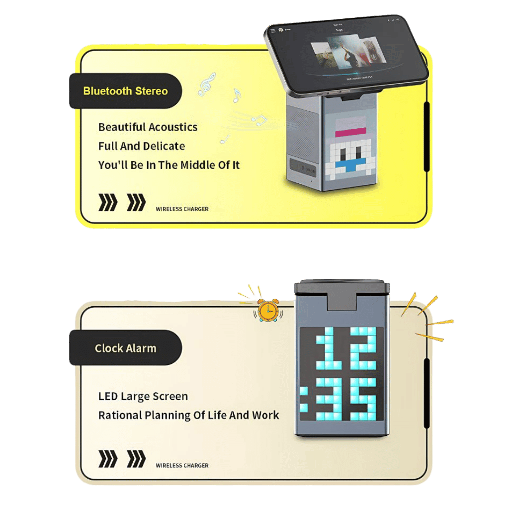 🔊 Built-In Clock, Alarm & Bluetooth Speaker