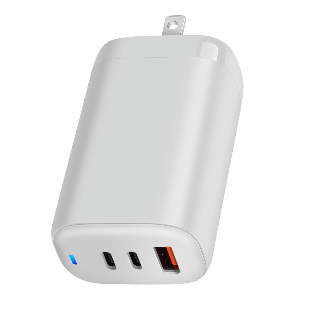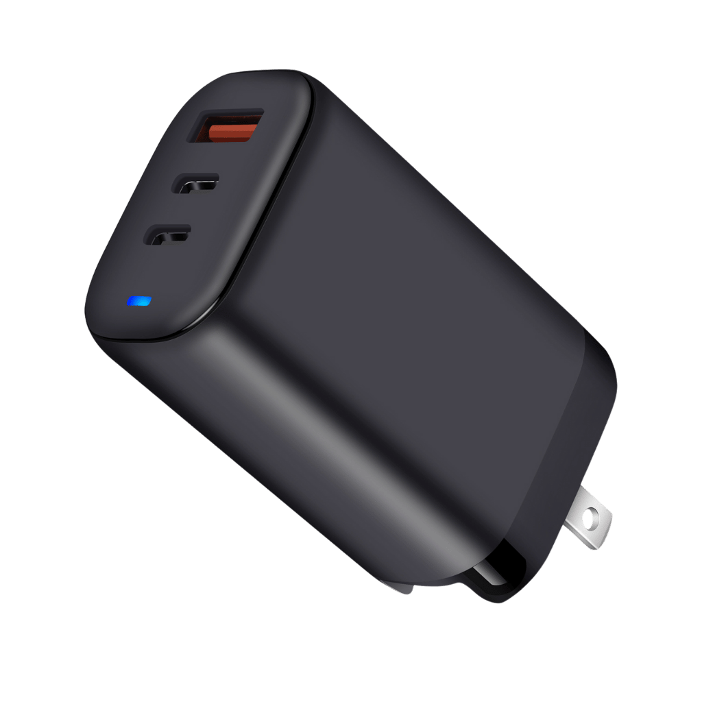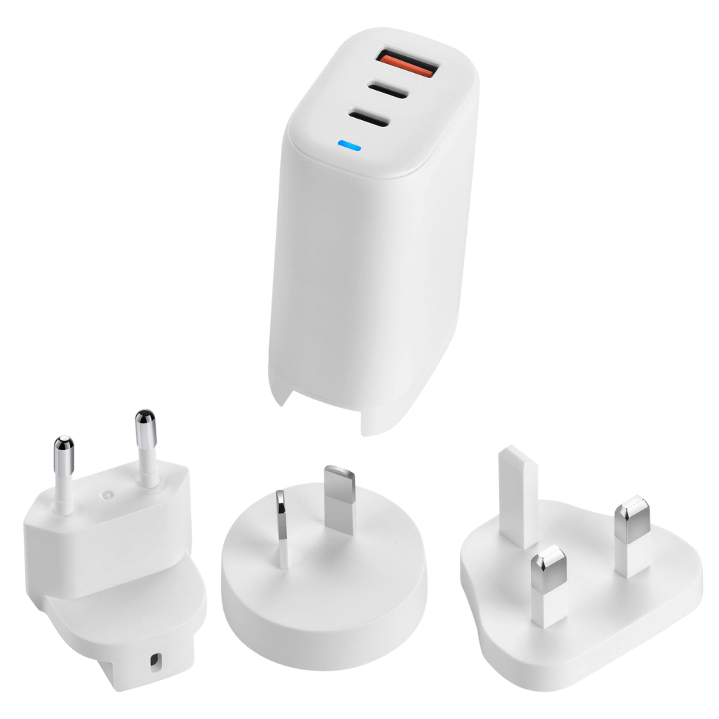 - 65W GaN 3-Port USB-C Charger: Main charging unit equipped with two USB-C ports and one USB-A port.