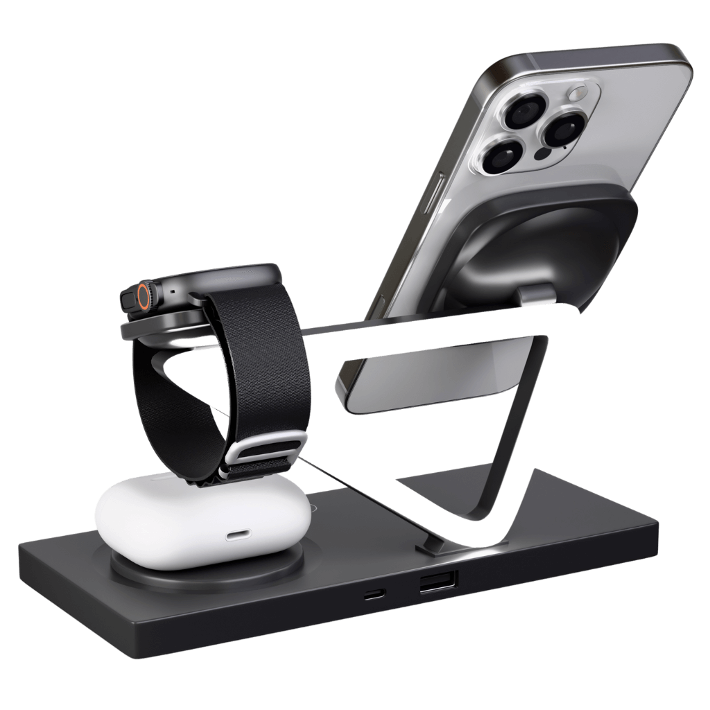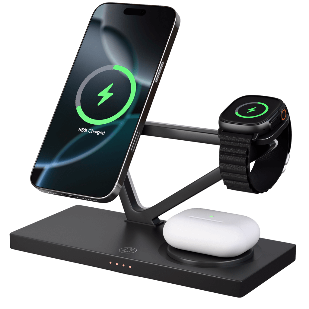 Power your iPhone, Apple Watch, and AirPods in one clean, wireless setup — no extra cables needed.