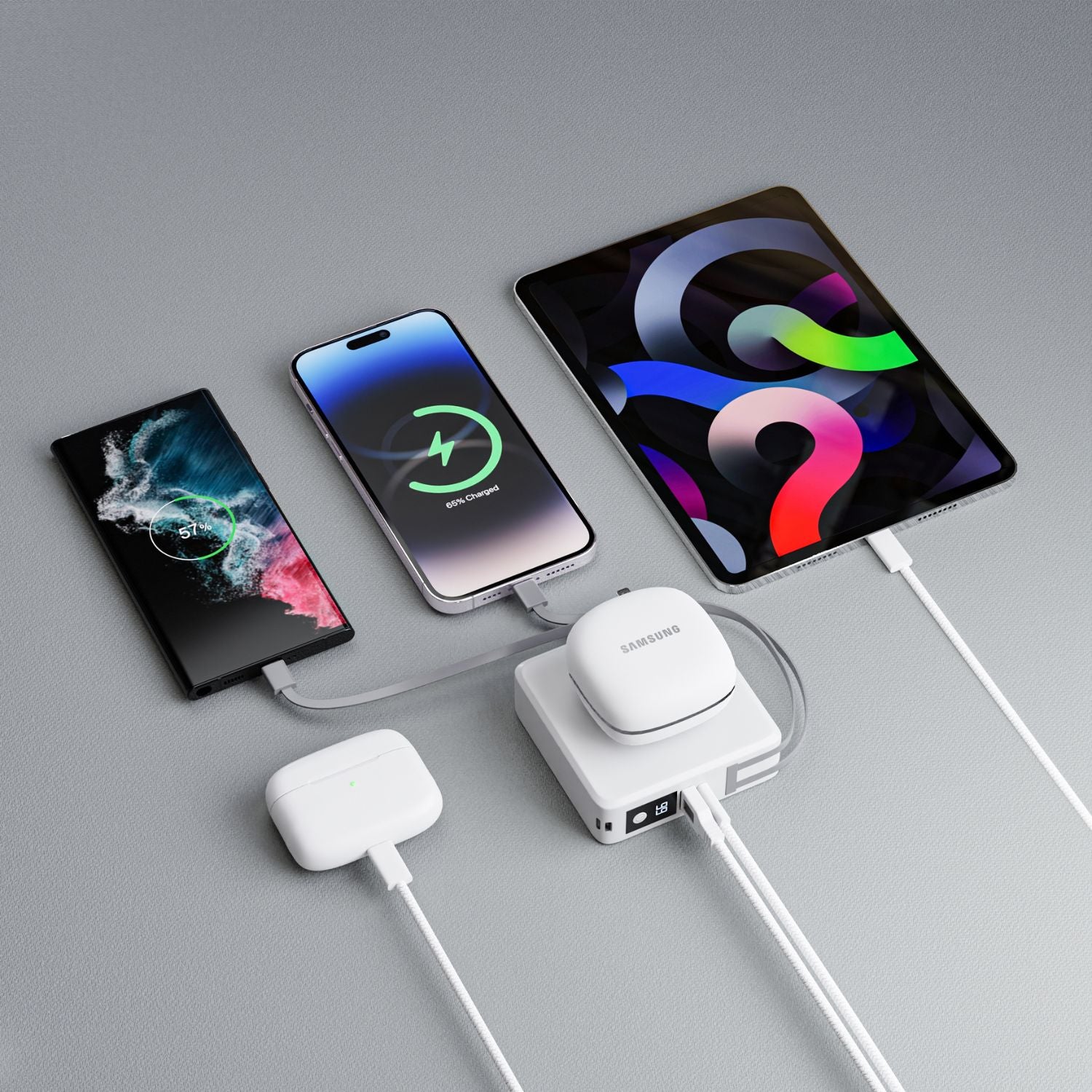 With the Universal Power Bank, charging multiple devices simultaneously has never been easier. Enjoy the convenience of multiple charging options and power sharing capabilities.